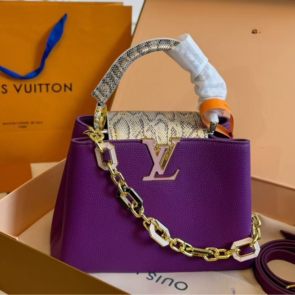LOUIS VUITTON CAPUCINE TOP HANDLE BAG IN LUXURY PURPLE 10.6 INCHES