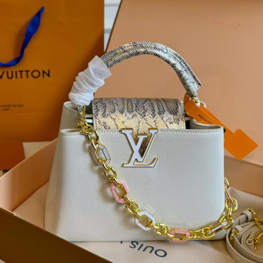 LOUIS VUITTON CAPUCINE TOP HANDLE BAG IN LUXURY WHITE 10.6 INCHES