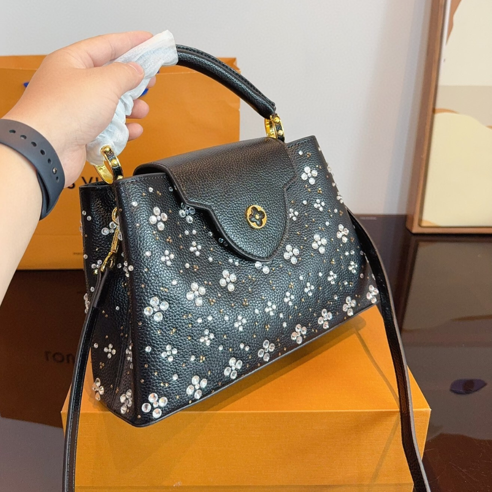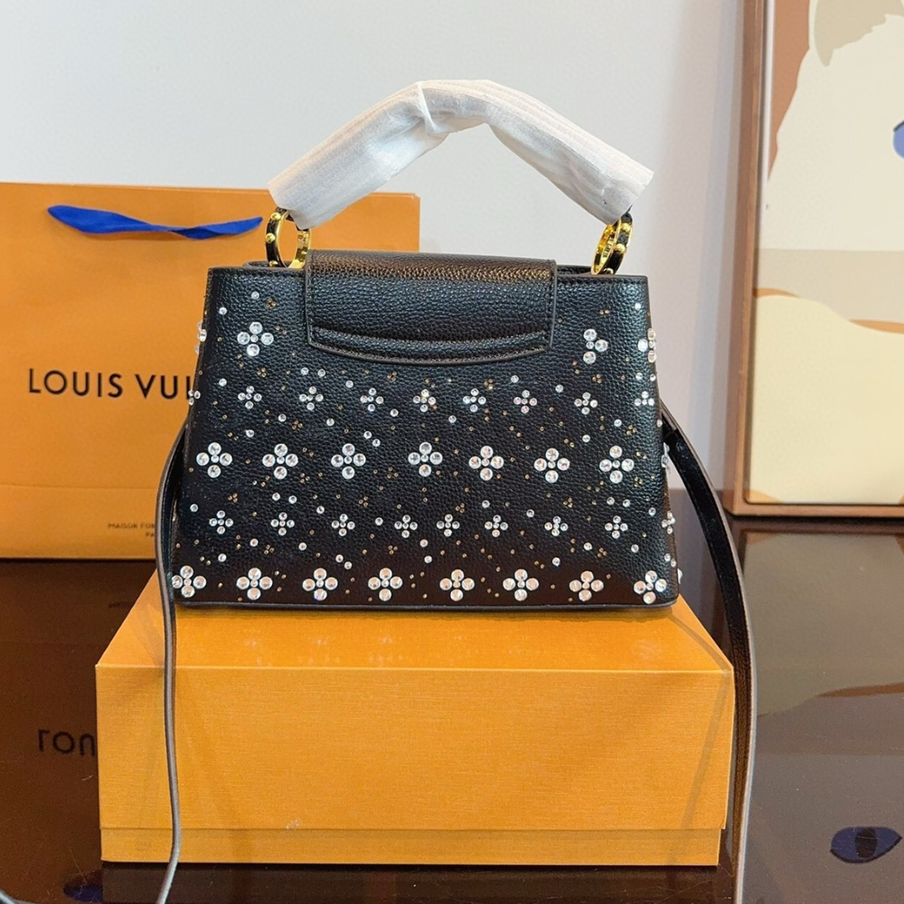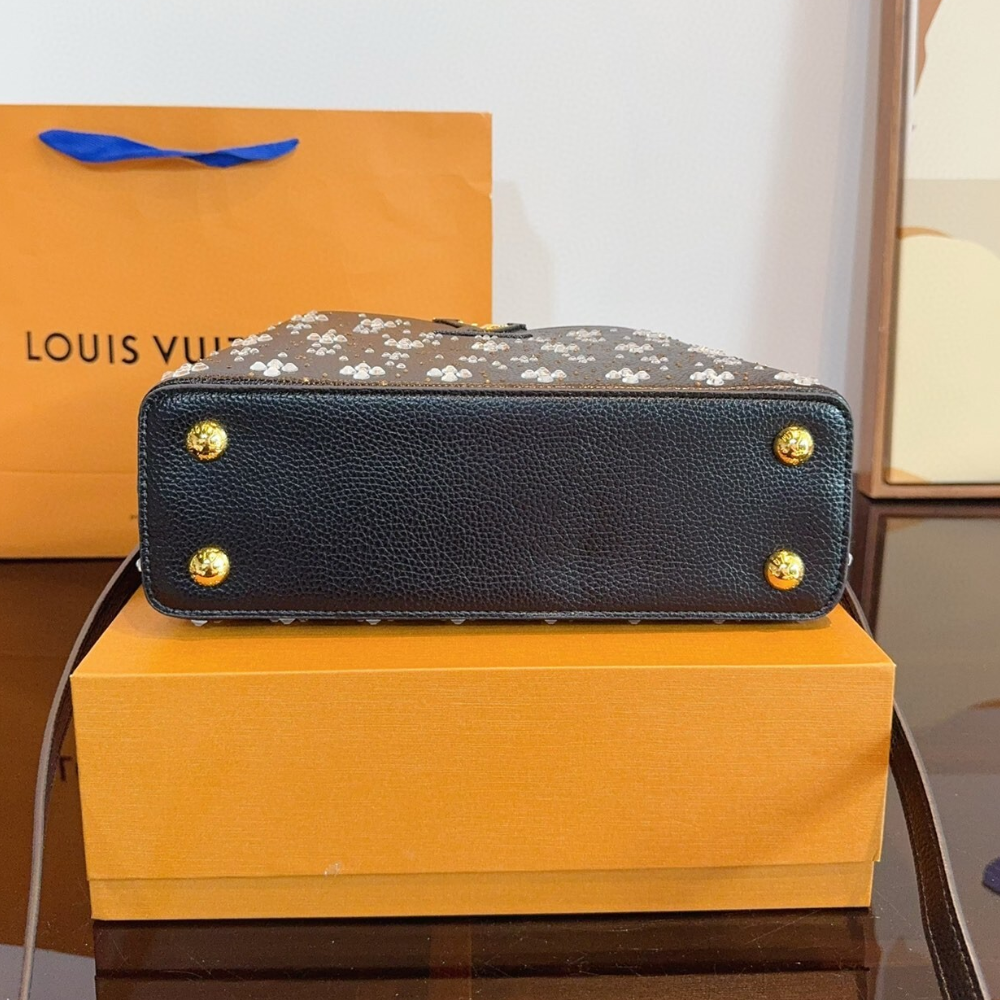 LOUIS VUITTON CAPUCINES BB BLACK WITH FLOWER STUDS BLACK 10.6 INCHES