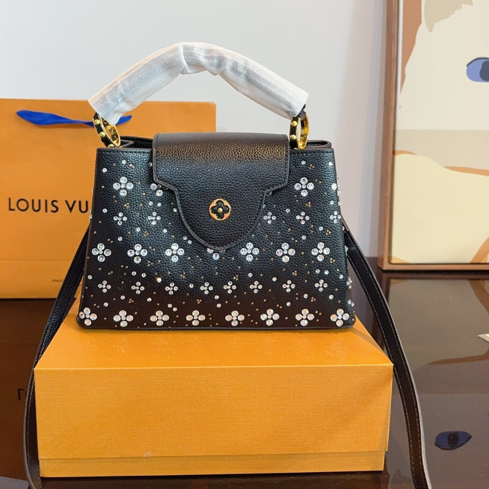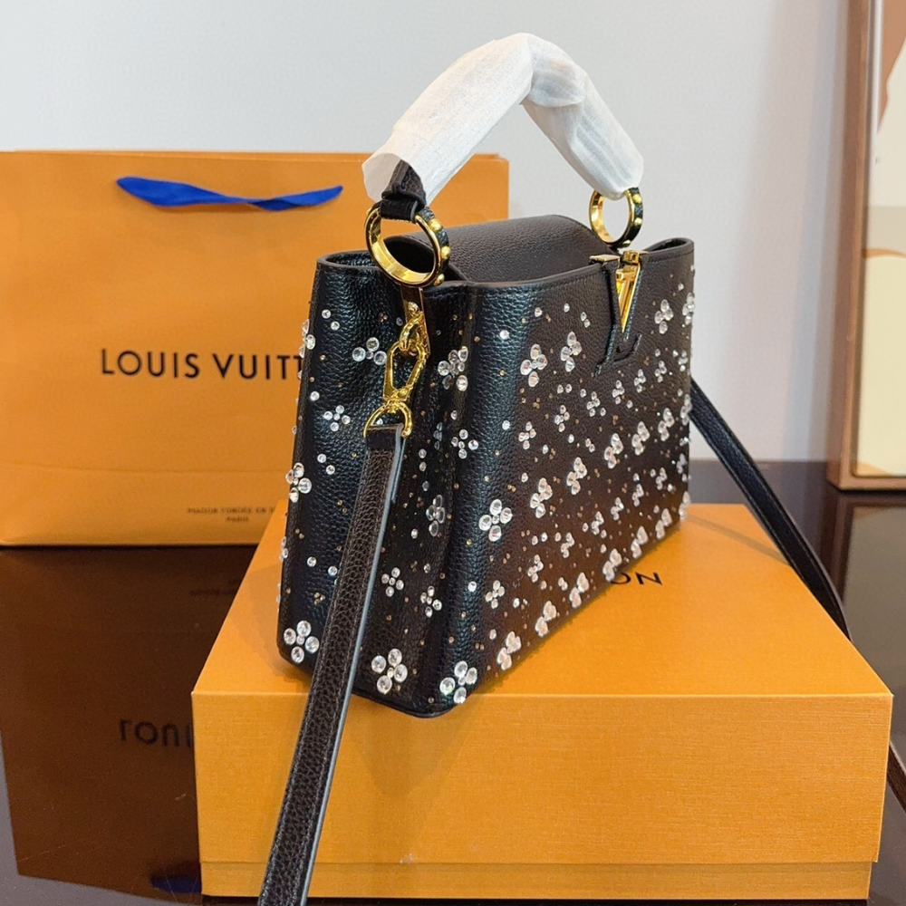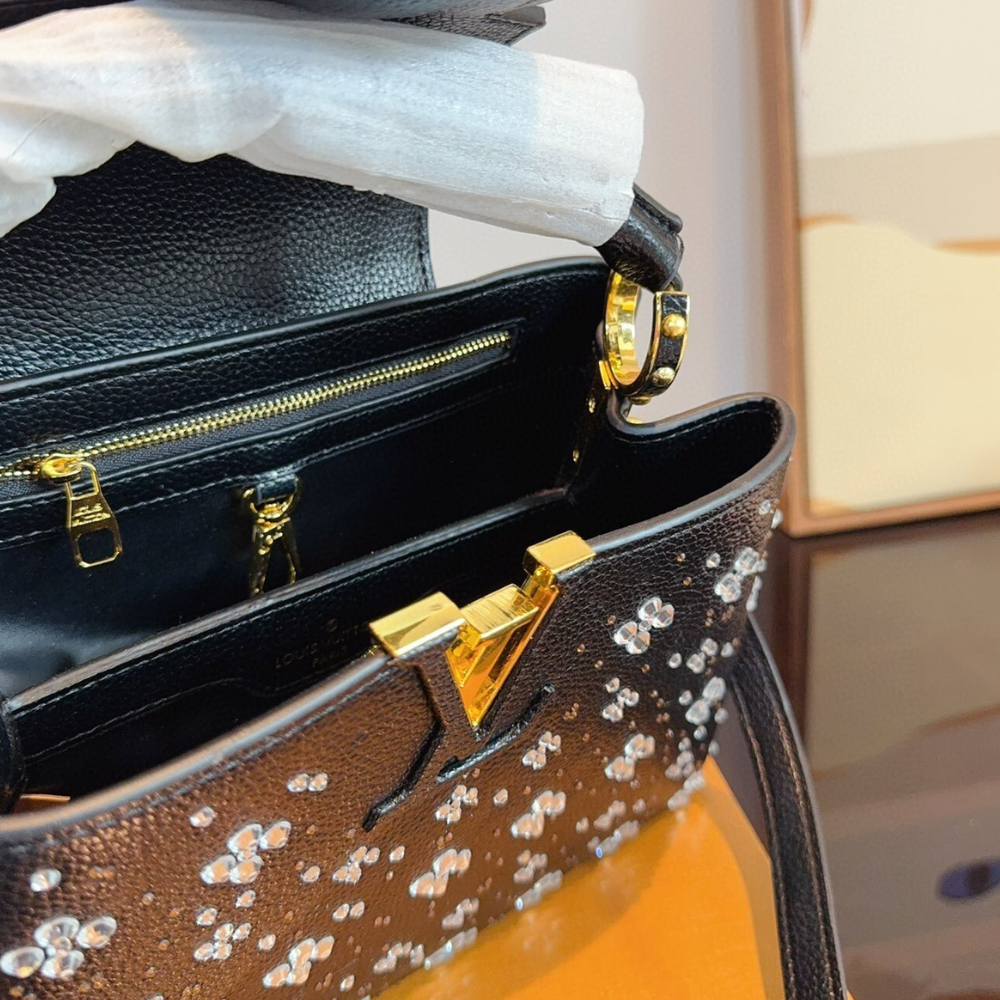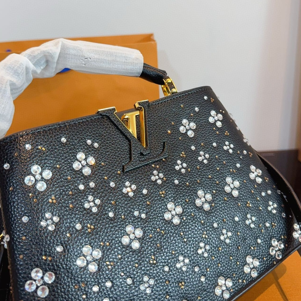 Louis Vuitton Capucines BB Black With Flower Studs// Black// 27cm