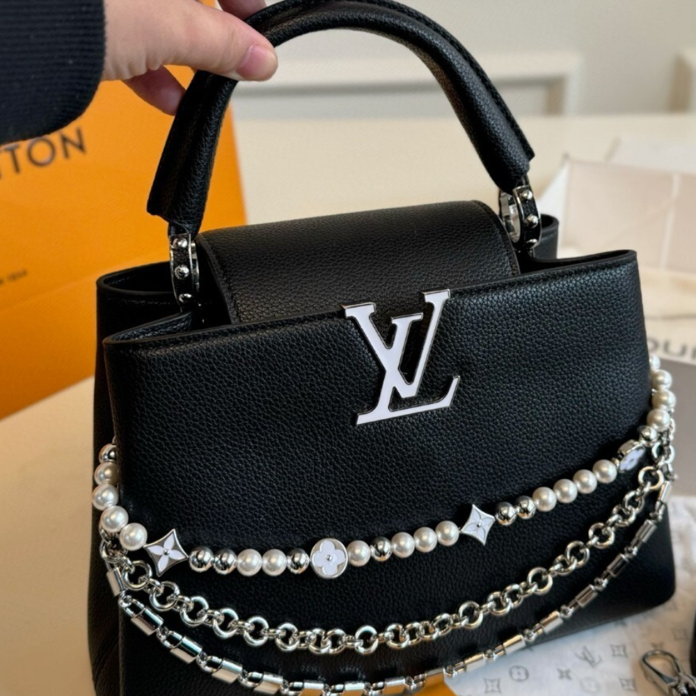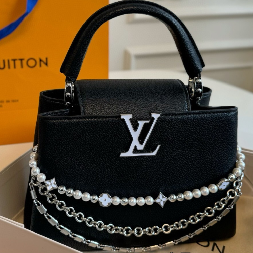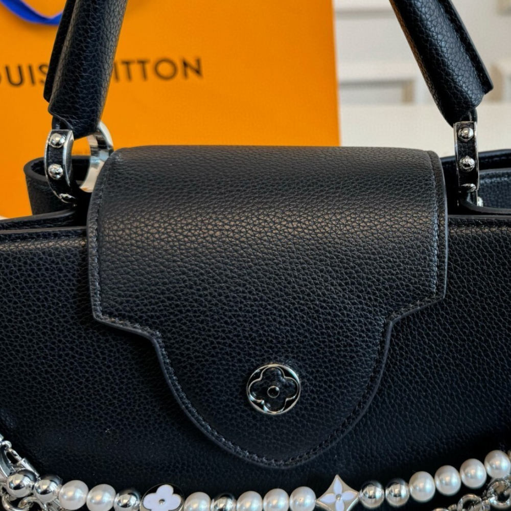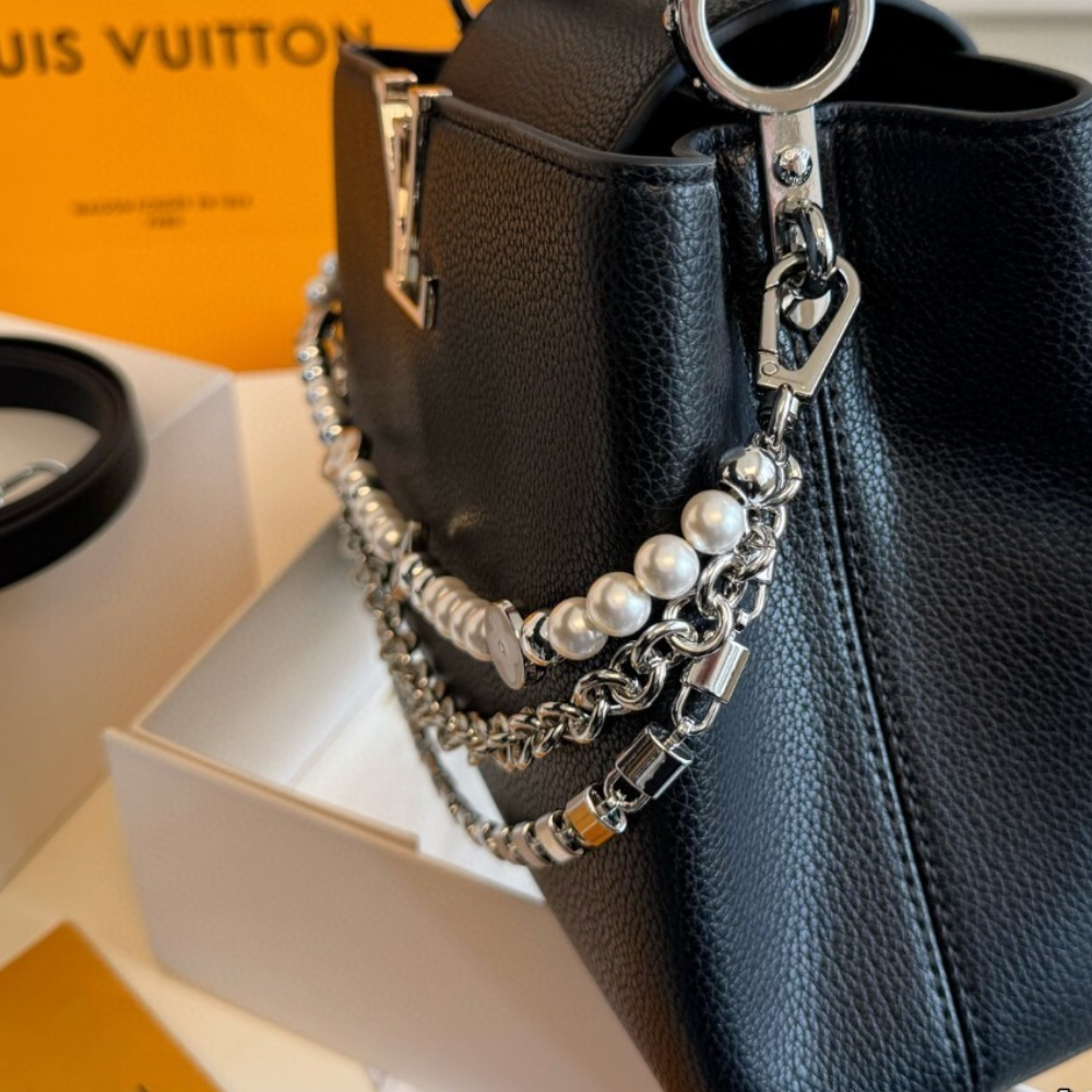 Replica 1:1 Louis Vuitton Capucines BB With Pearl And Chain Black