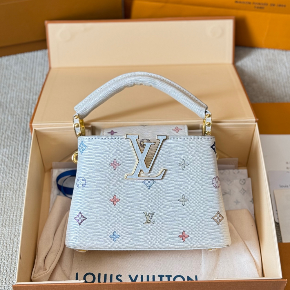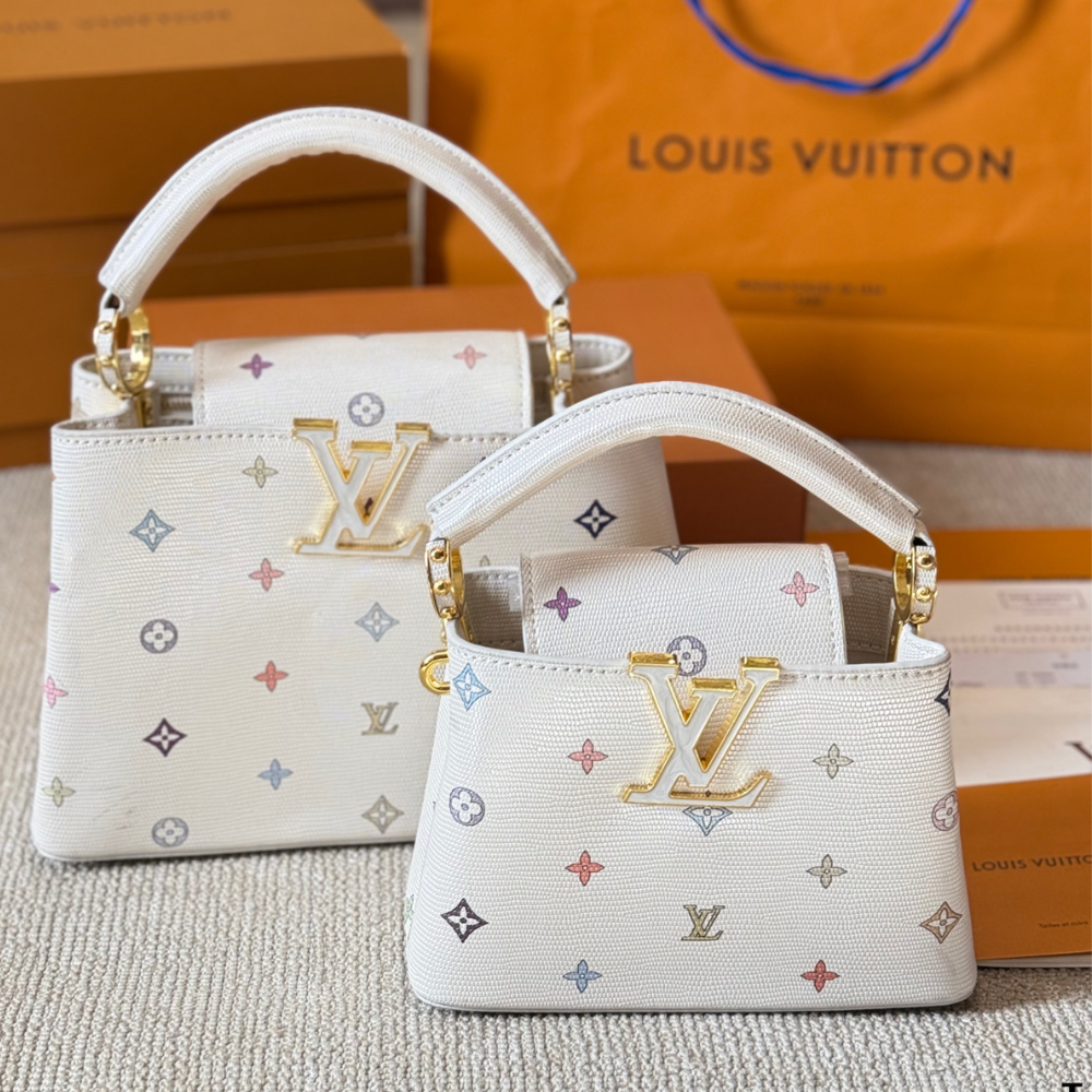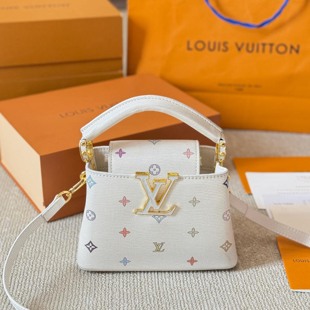 Replica 1:1 Louis Vuitton Capucines Mini Multicolor Monogram White