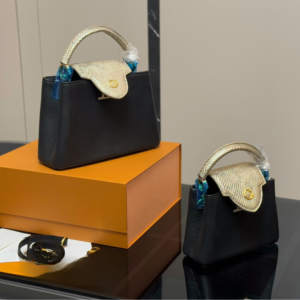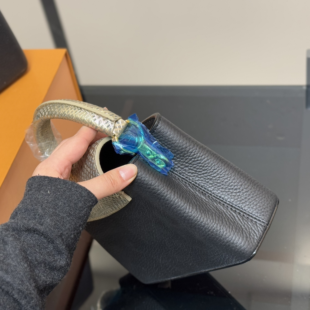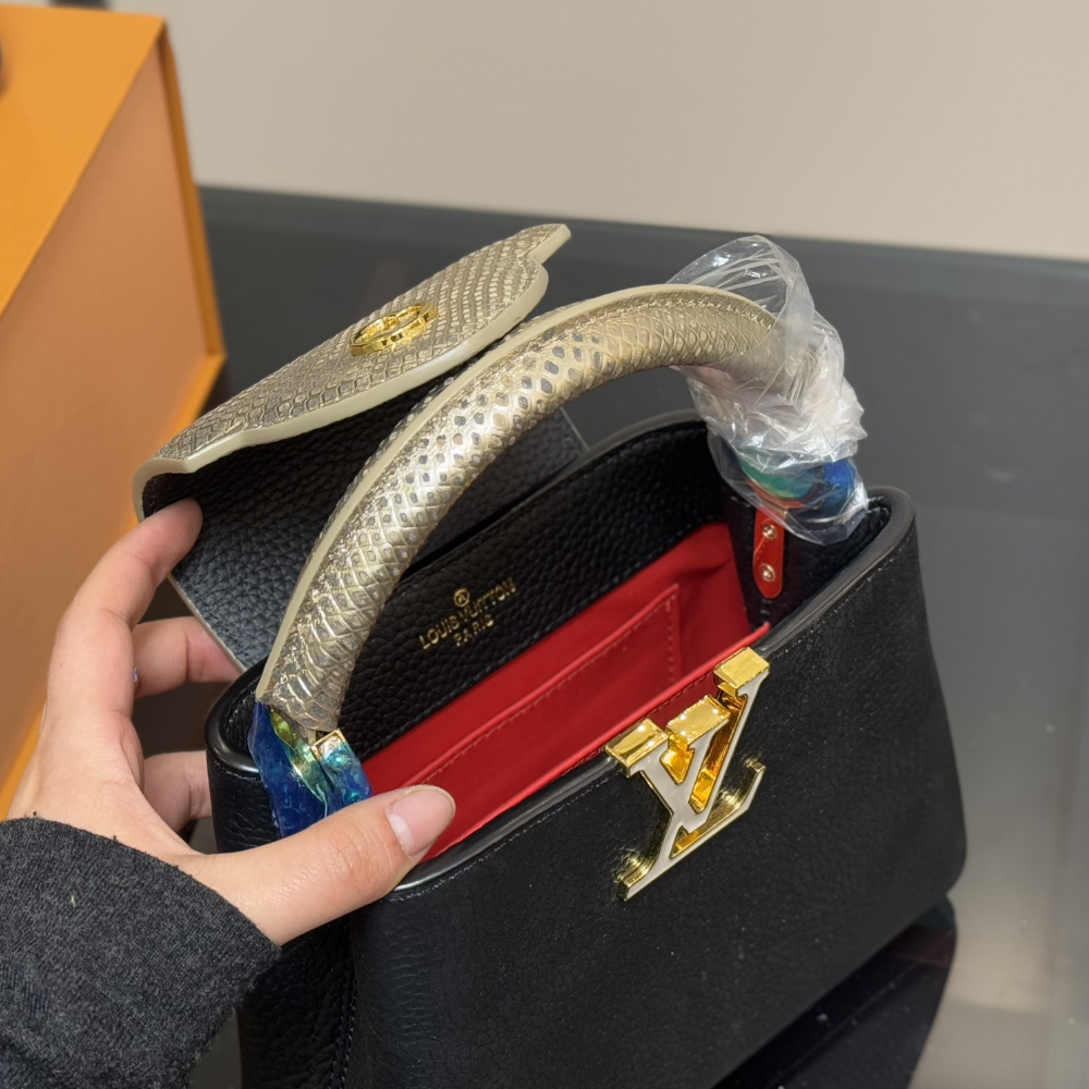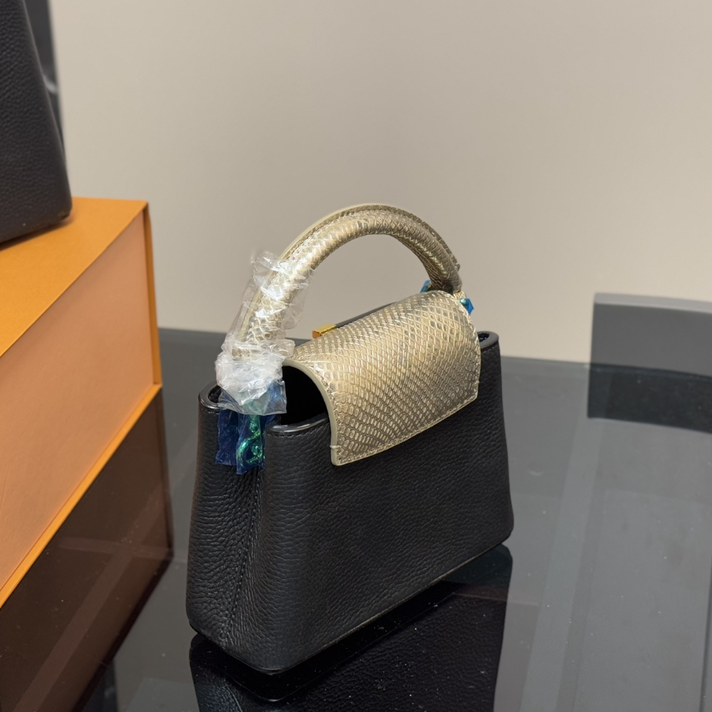 Replica 1:1 Louis Vuitton Capucines Mini Taurillon Leather With Python Handle Black