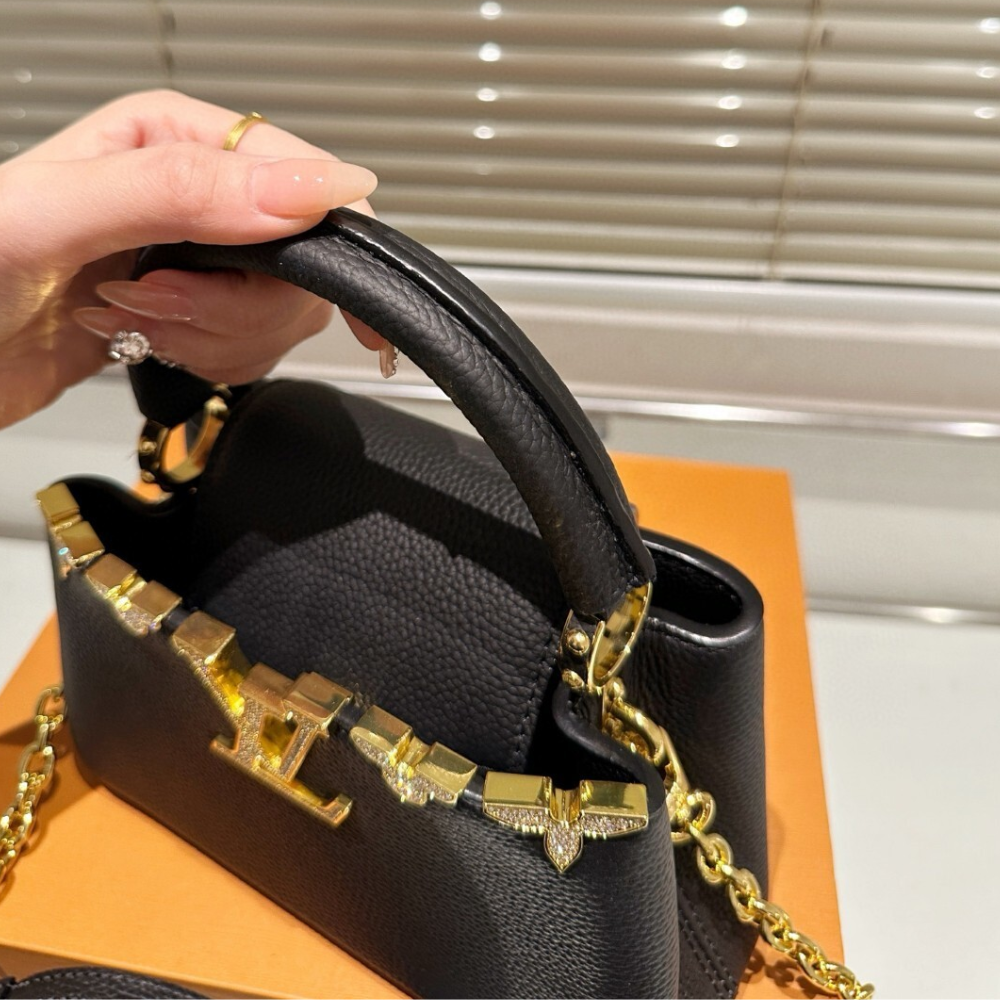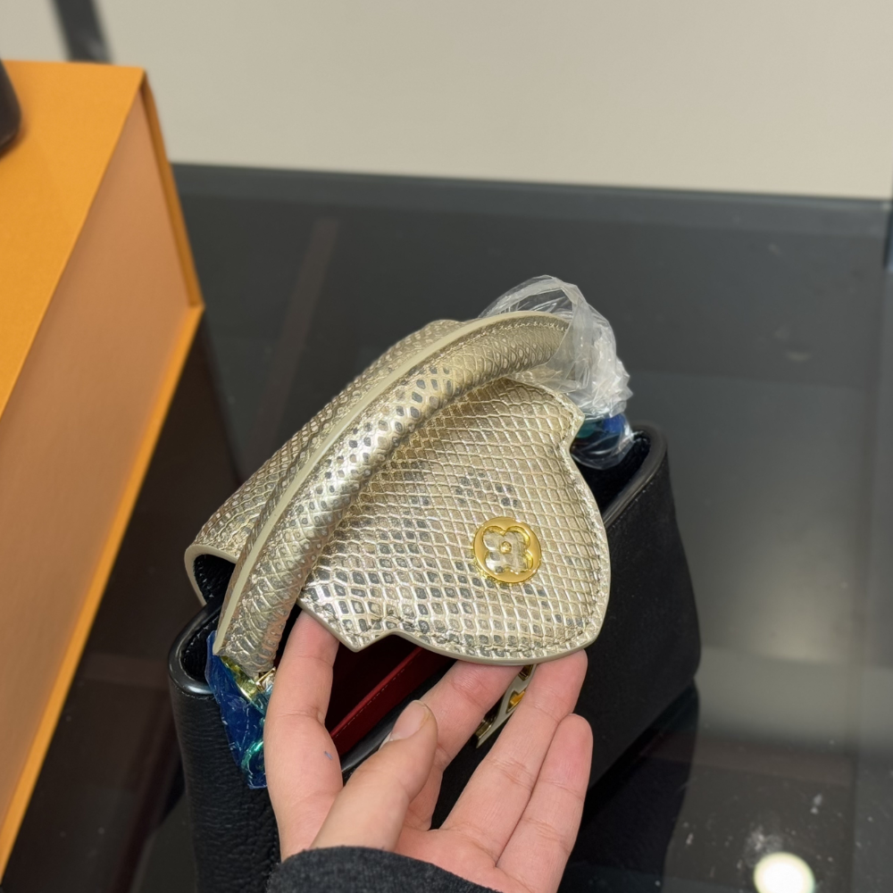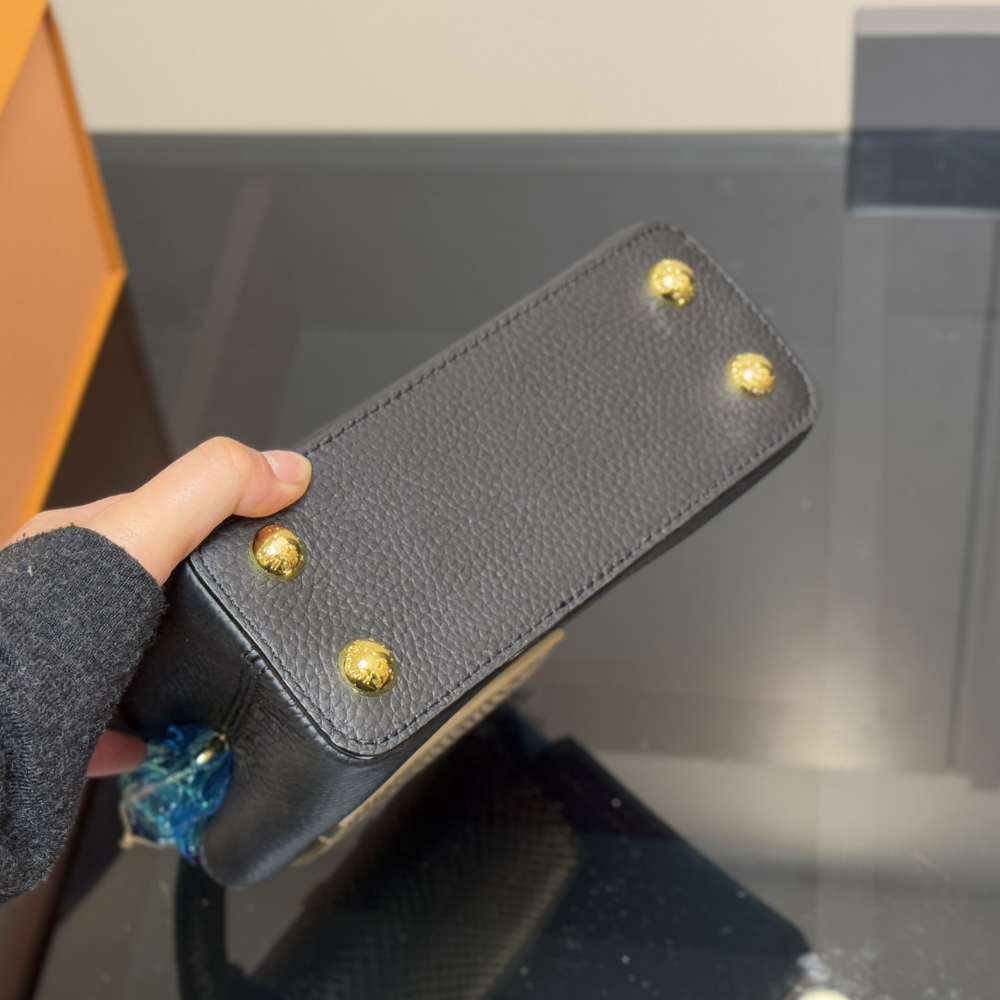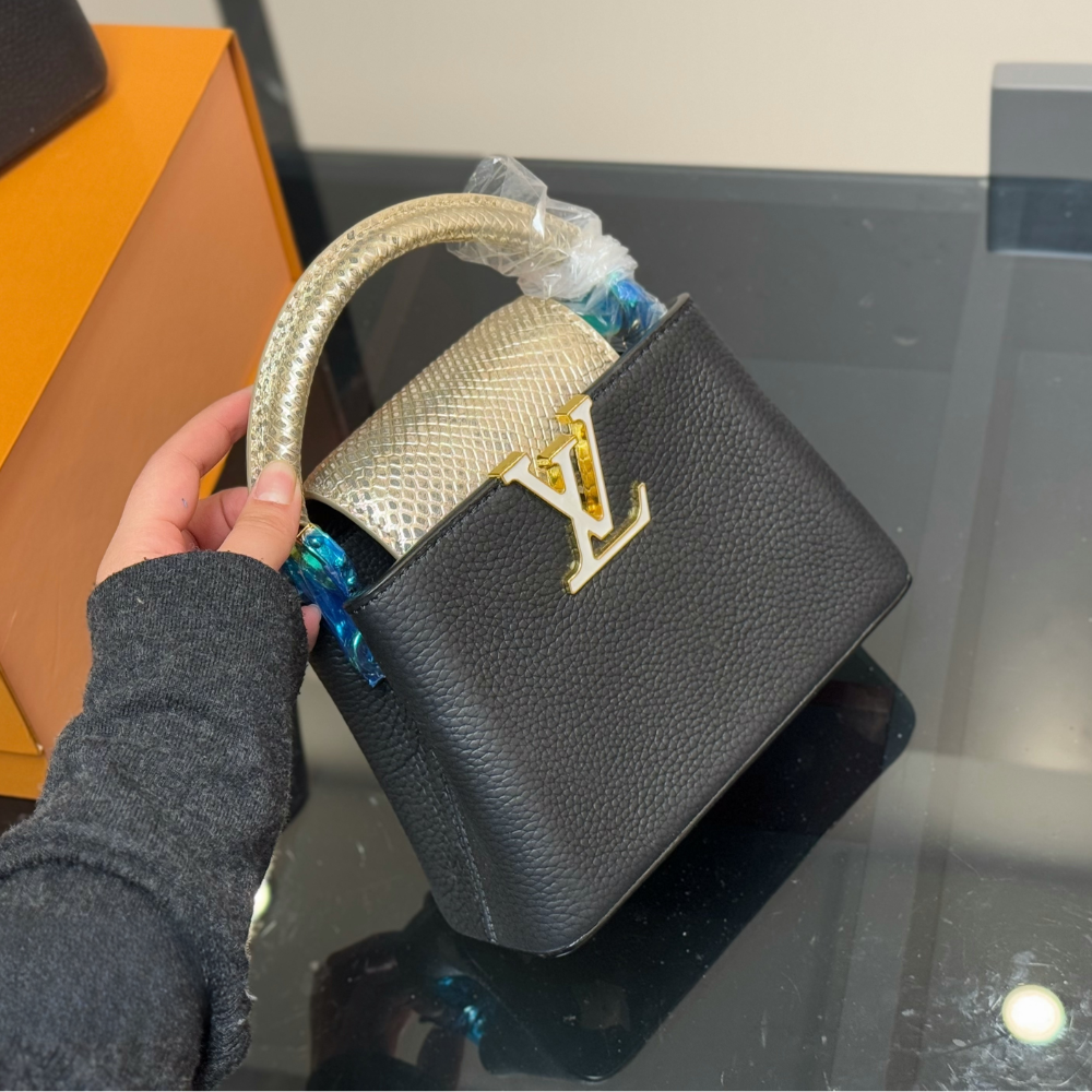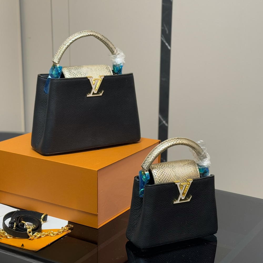 Replica 1:1 Louis Vuitton Capucines Mini Taurillon Leather With Python Handle Black