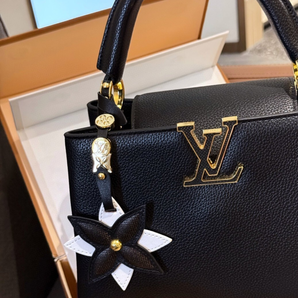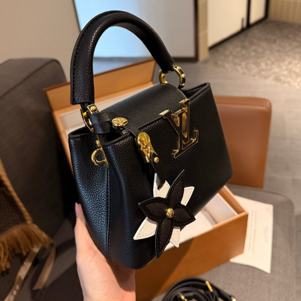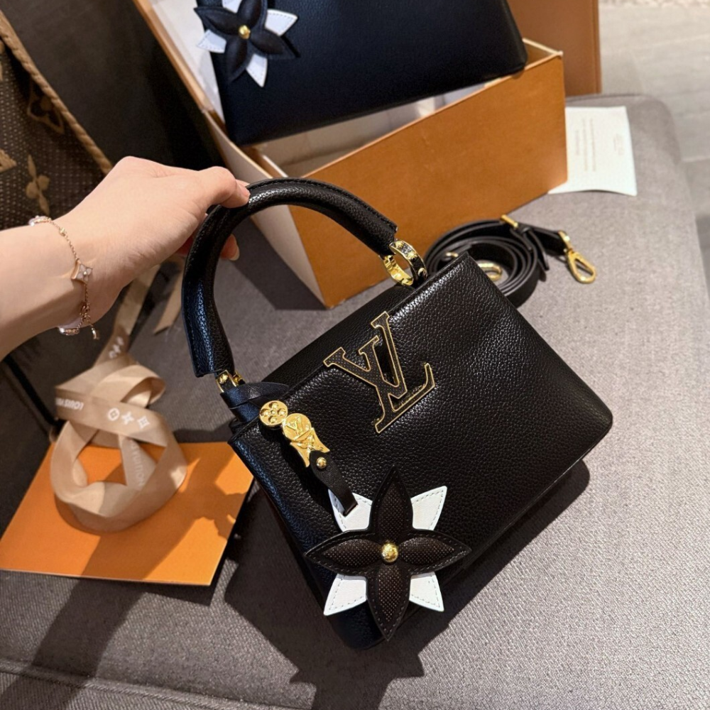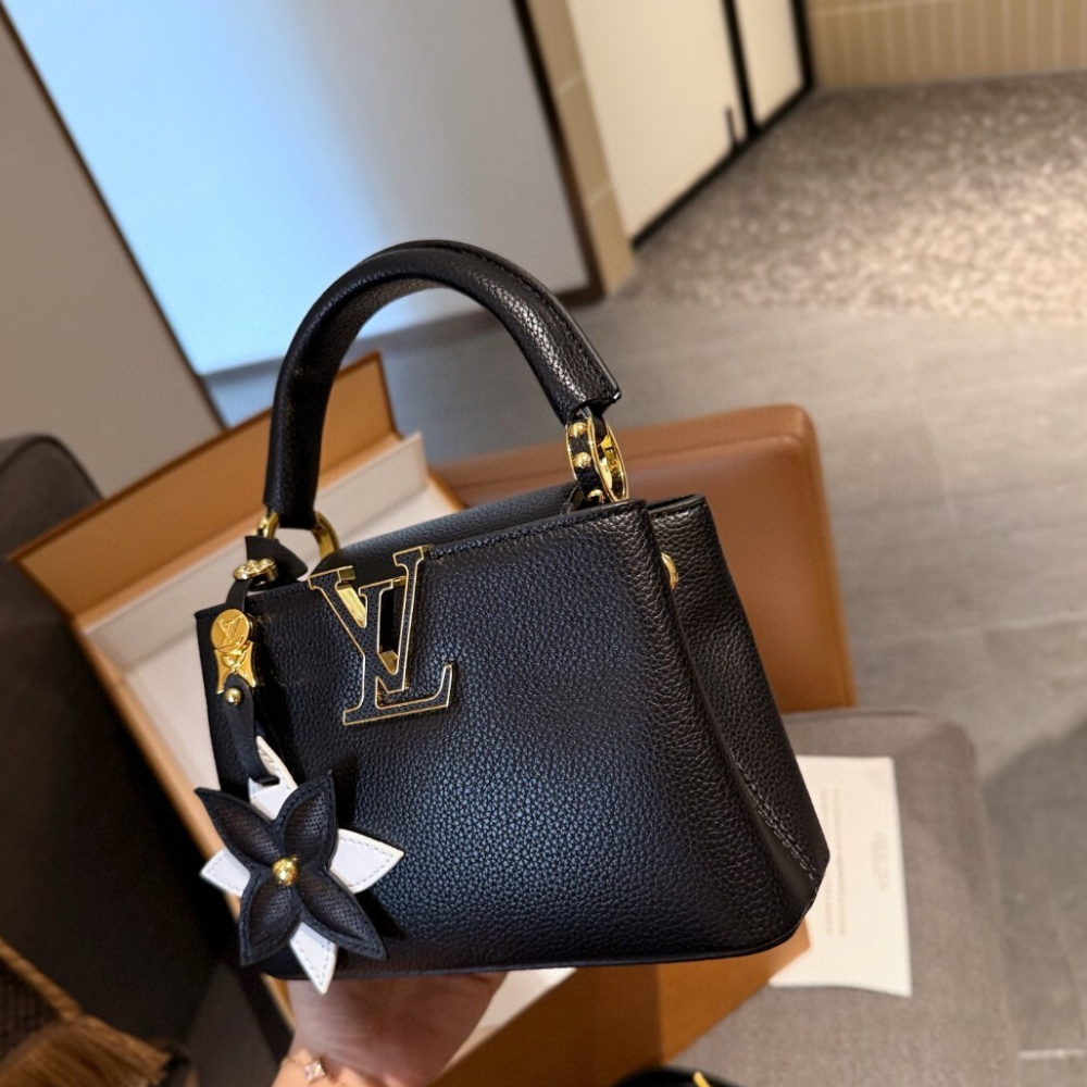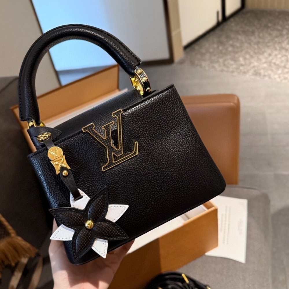 Replica 1:1 Louis Vuitton Capucines Mini With Flower Charm Black