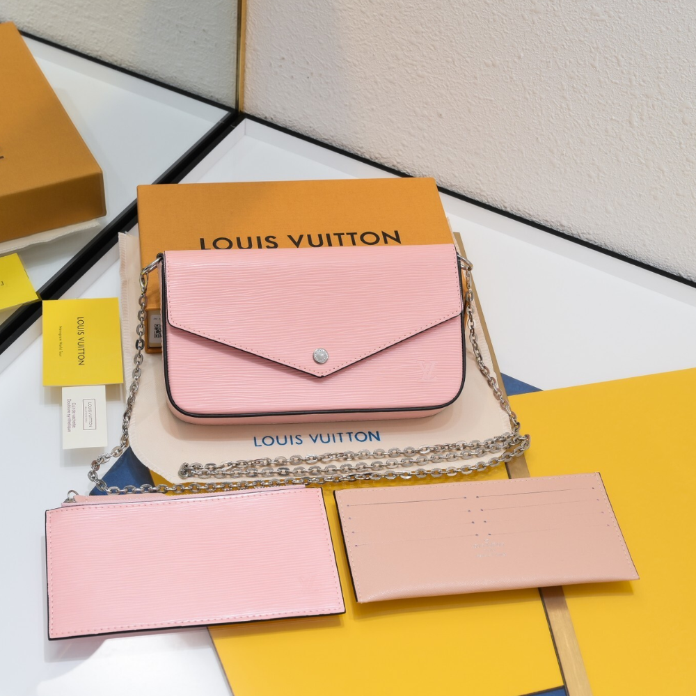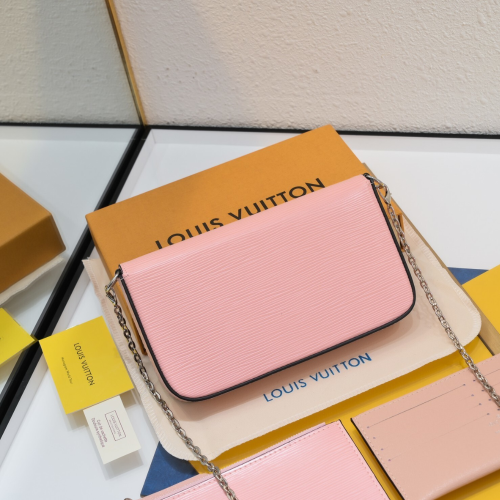 Replica 1:1 Louis Vuitton Félicie Pochette Epi Leather Rose Ballerine