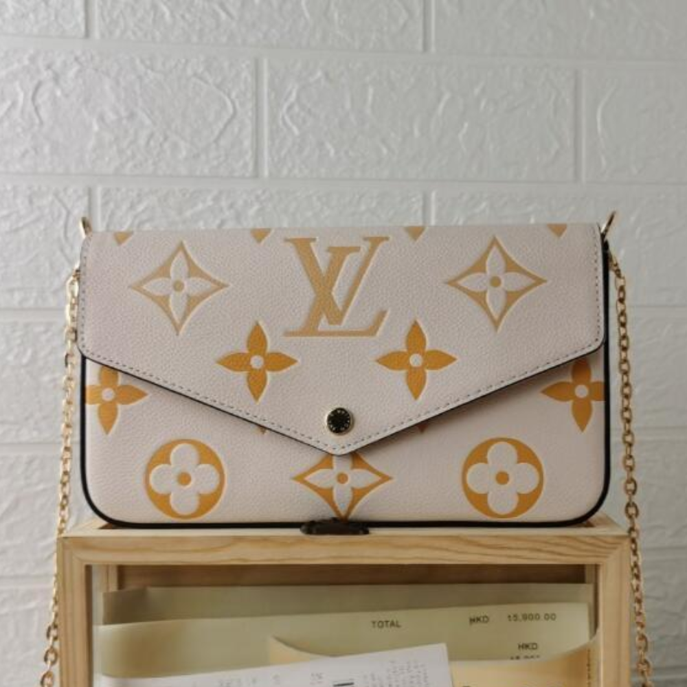 Louis Vuitton Pochette Félicie Monogram Empreinte Leather// Beige / Gold// 21cm