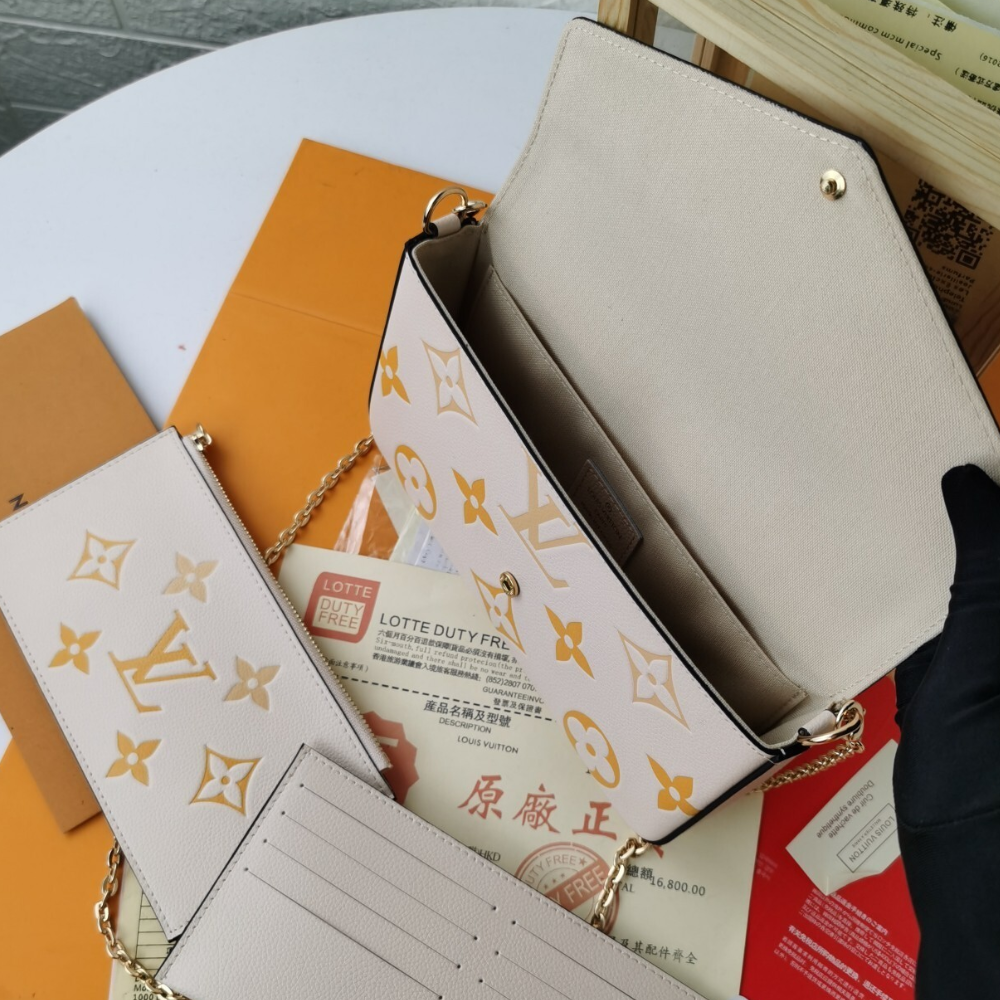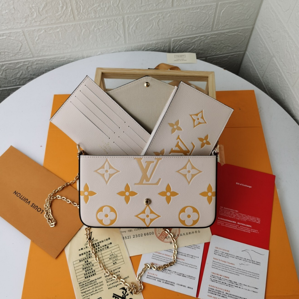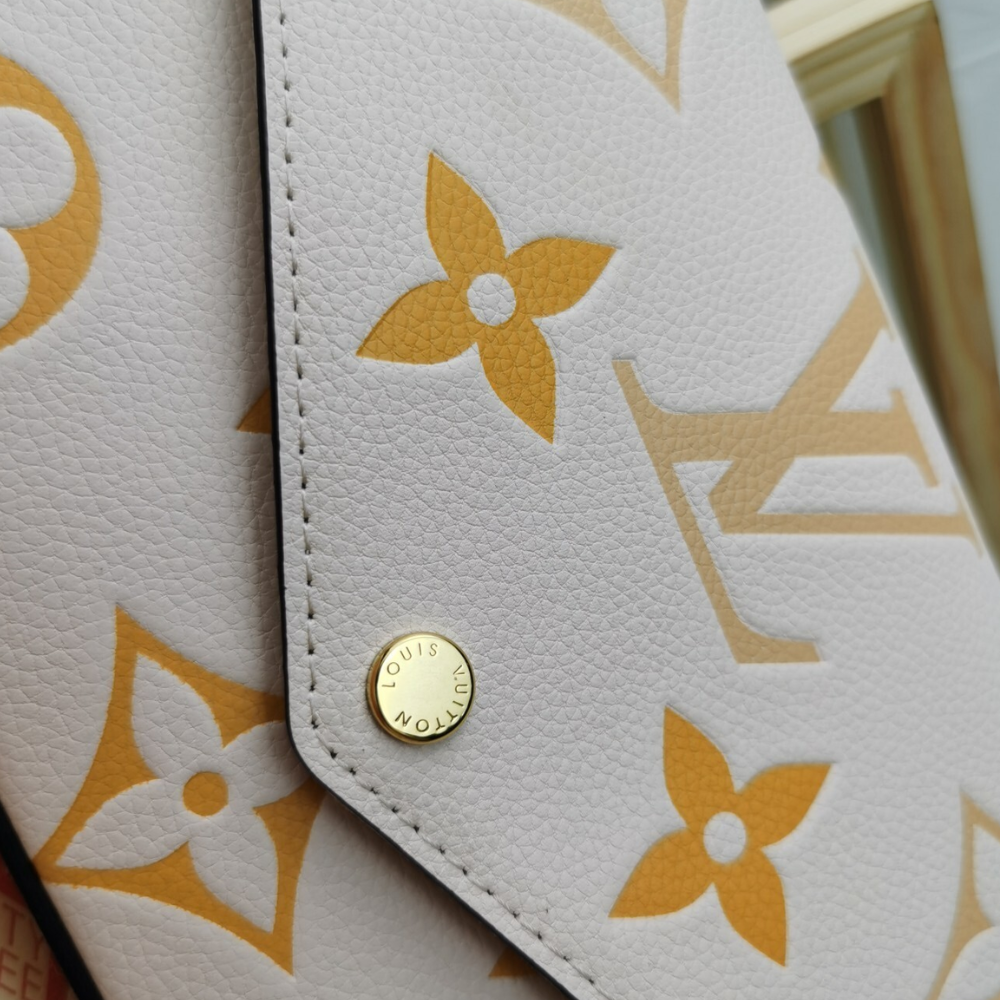 LOUIS VUITTON POCHETTE FÉLICIE MONOGRAM EMPREINTE LEATHER BEIGE / GOLD 8.3 INCHES M80498