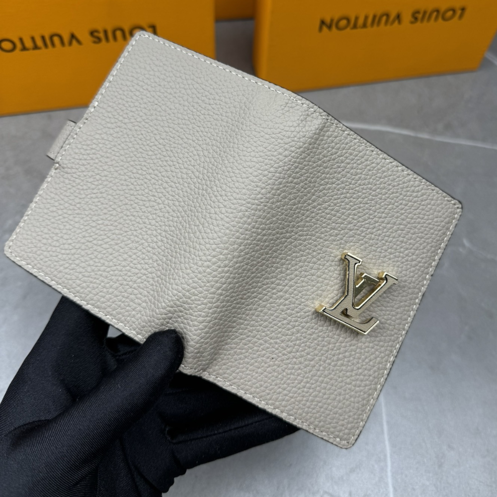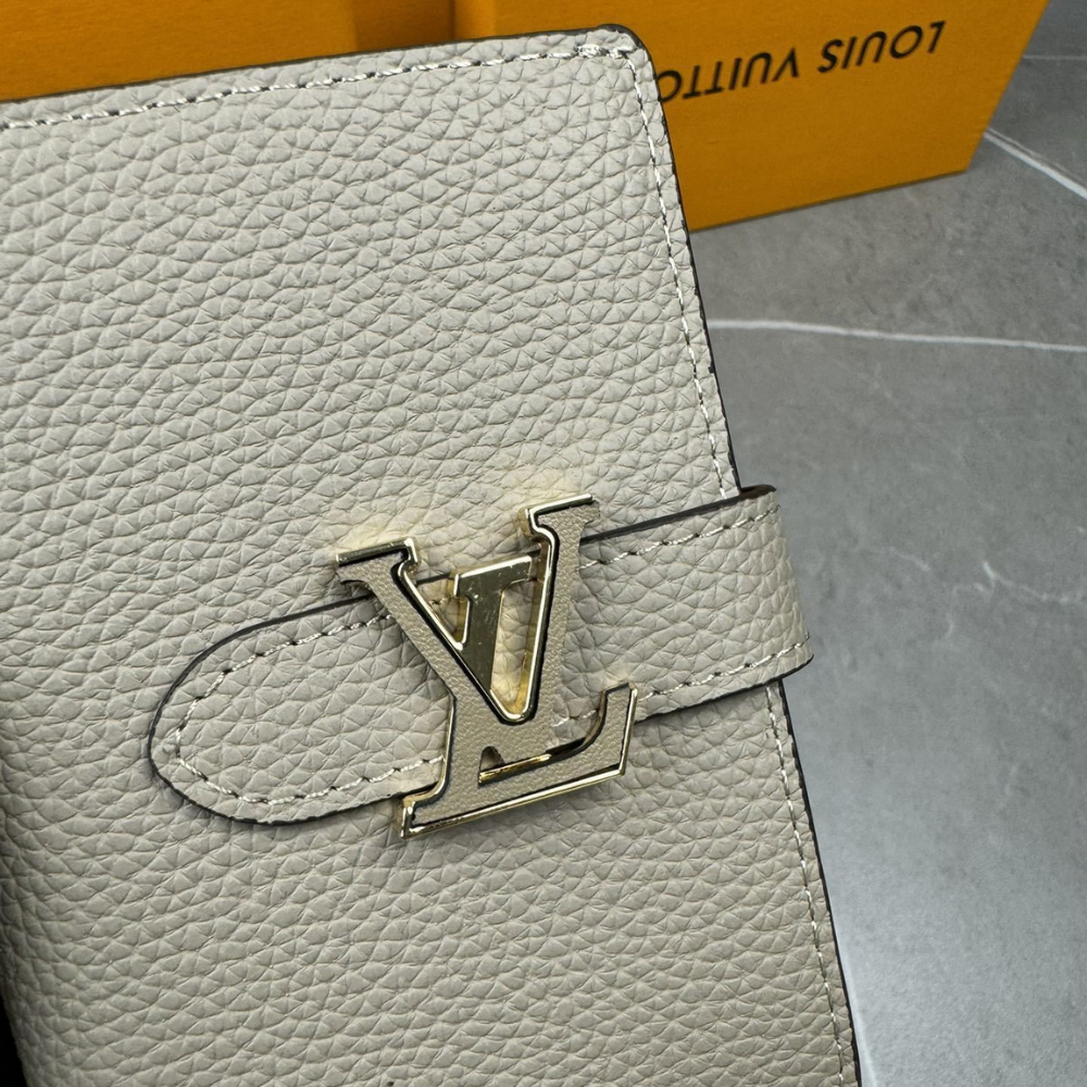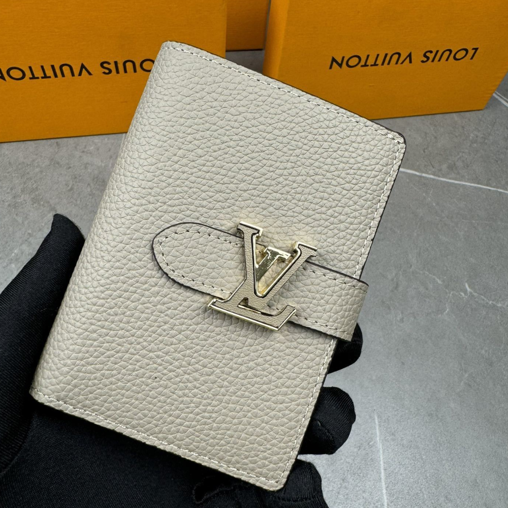Replica 1:1 Louis Vuitton Vertical Compact Wallet Capucines Taurillon Leather Beige