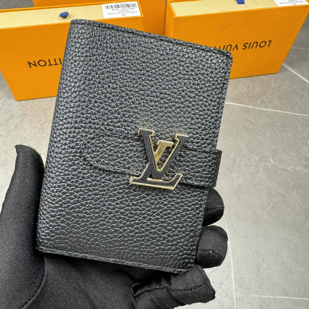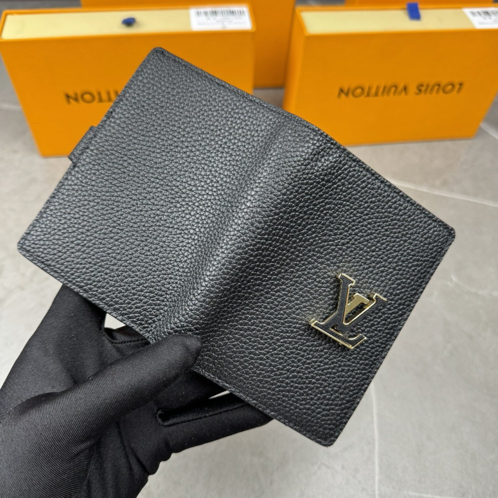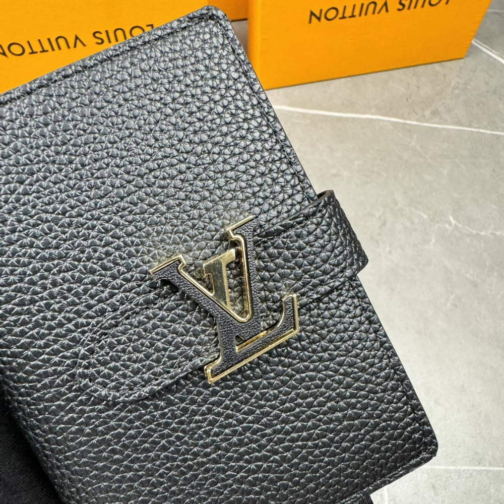 Replica 1:1 Louis Vuitton Vertical Compact Wallet Capucines Taurillon Leather Black