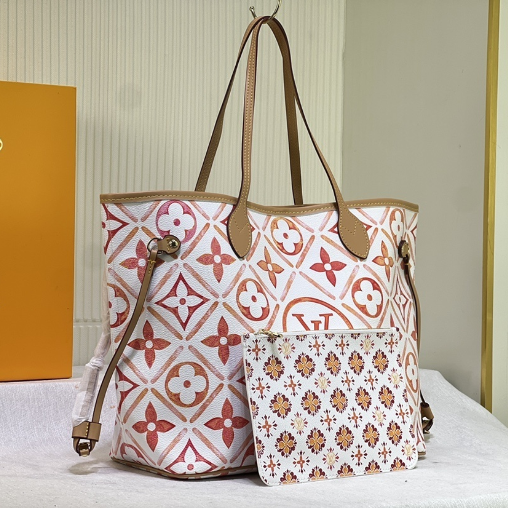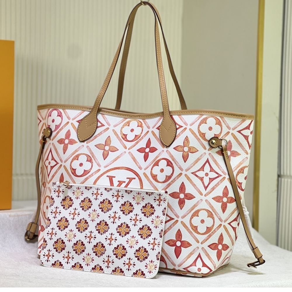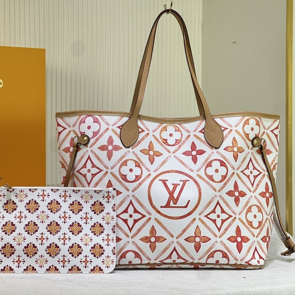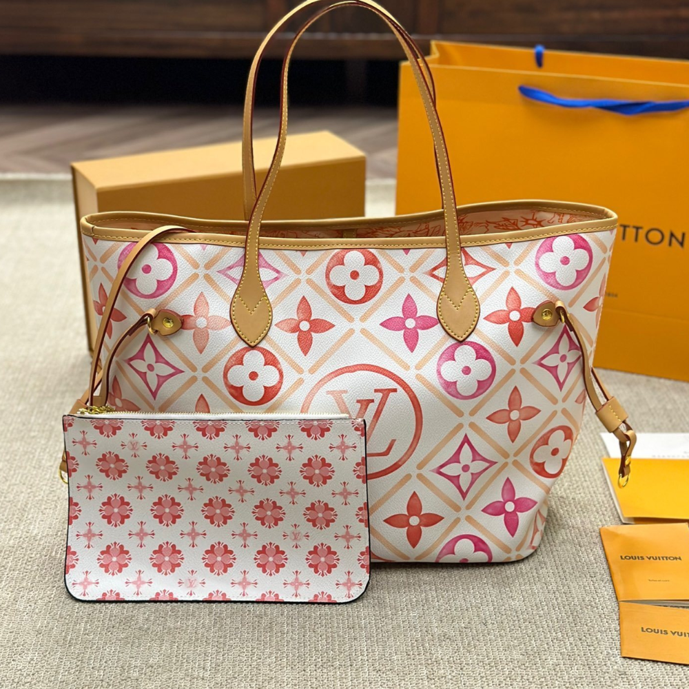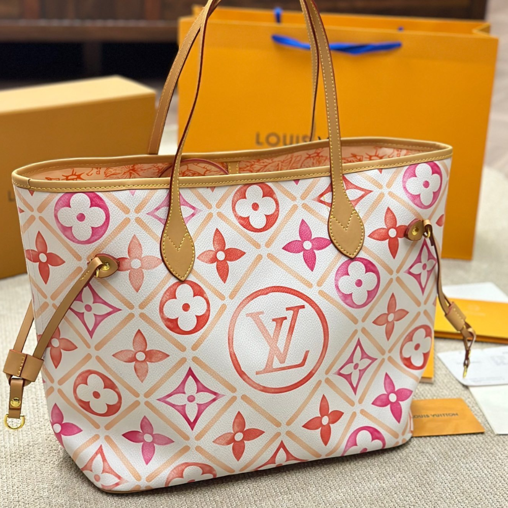 Replica 1:1 Louis Vuitton Neverfull By the Pool Pink/Orange