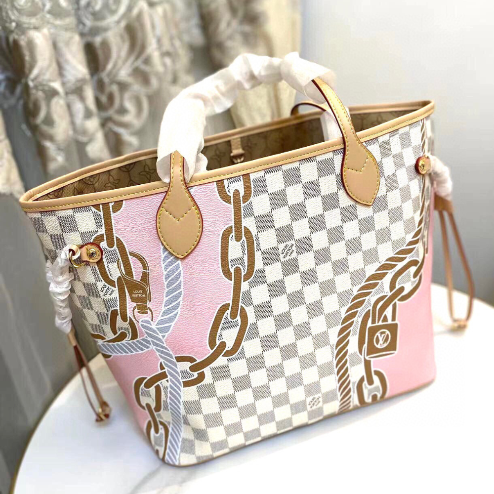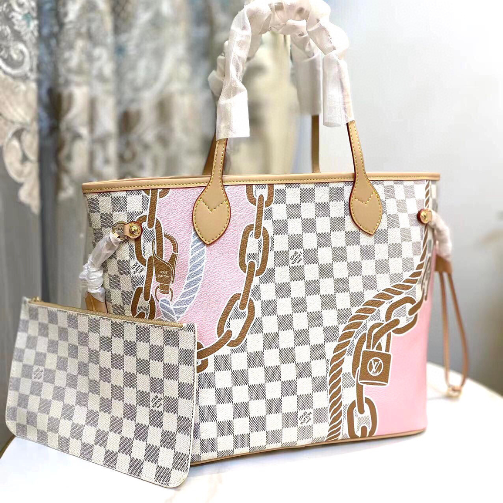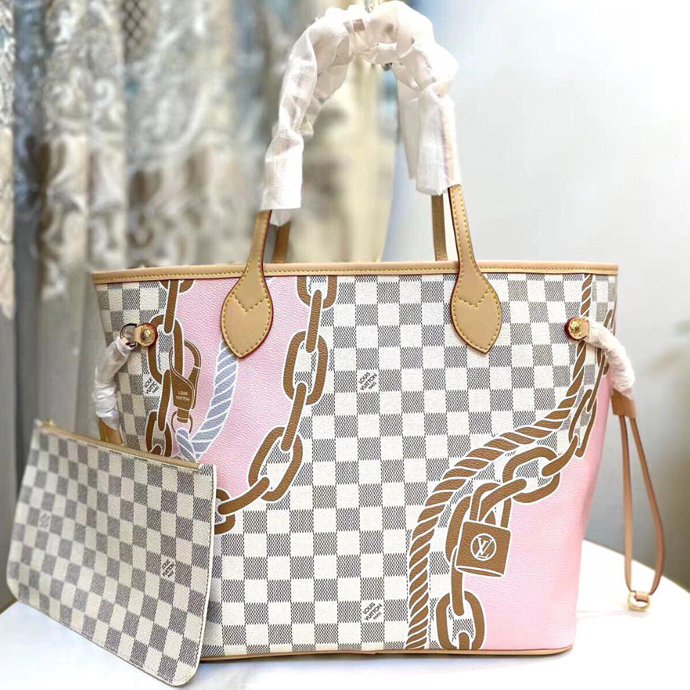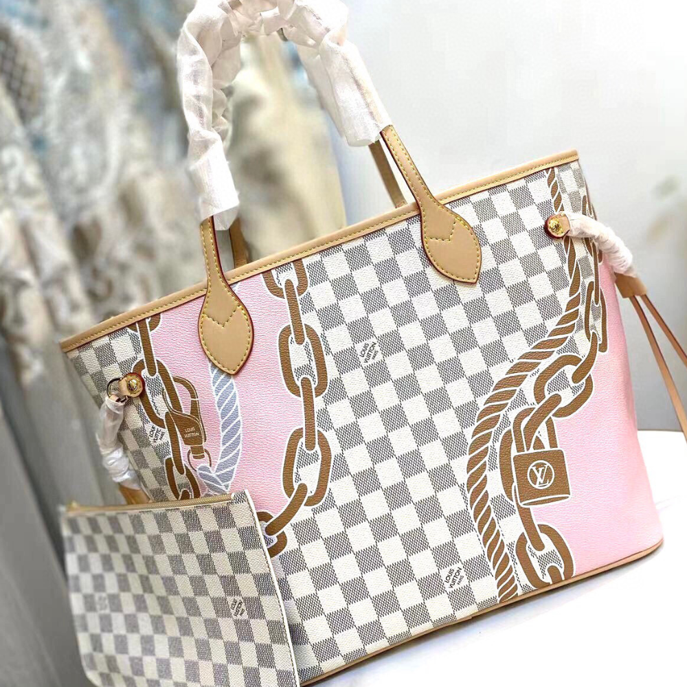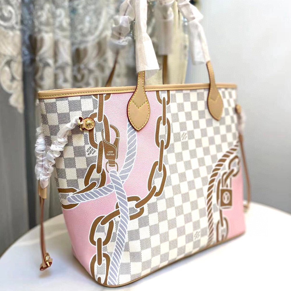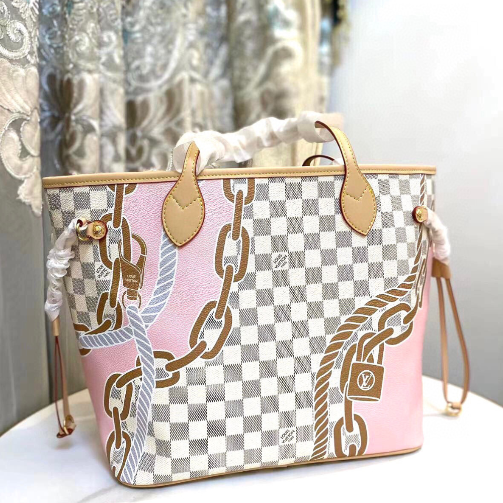 Replica 1:1 Louis Vuitton Neverfull Damier Azur Canvas Summer Trunks Pink