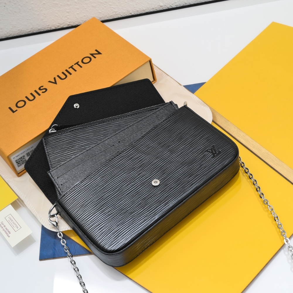 Replica 1:1 Louis Vuitton Pochette Félicie Epi Leather Black