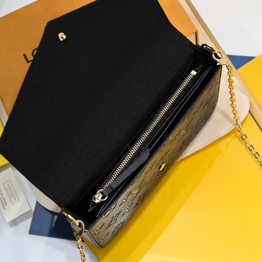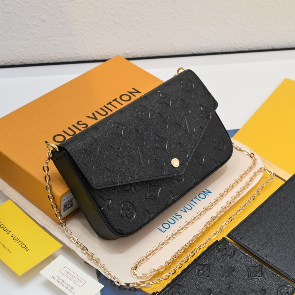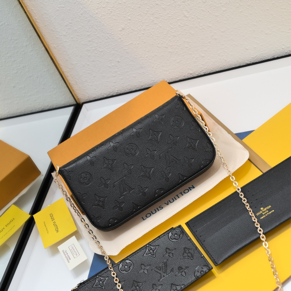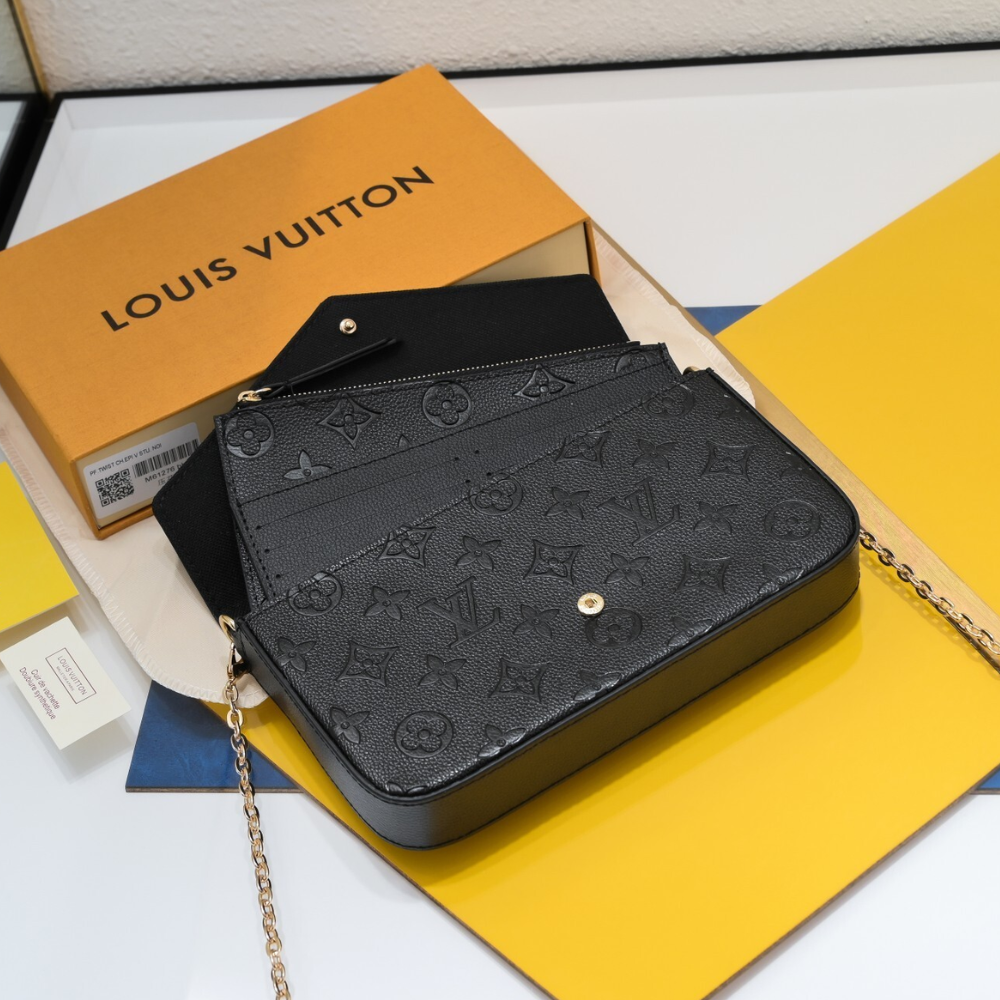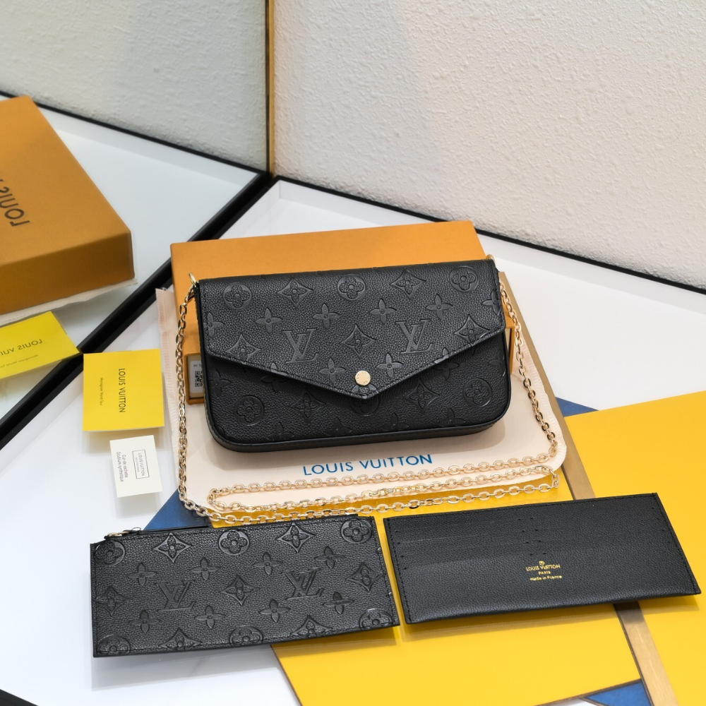 Replica 1:1 Louis Vuitton Pochette Félicie Monogram Empreinte Leather Black