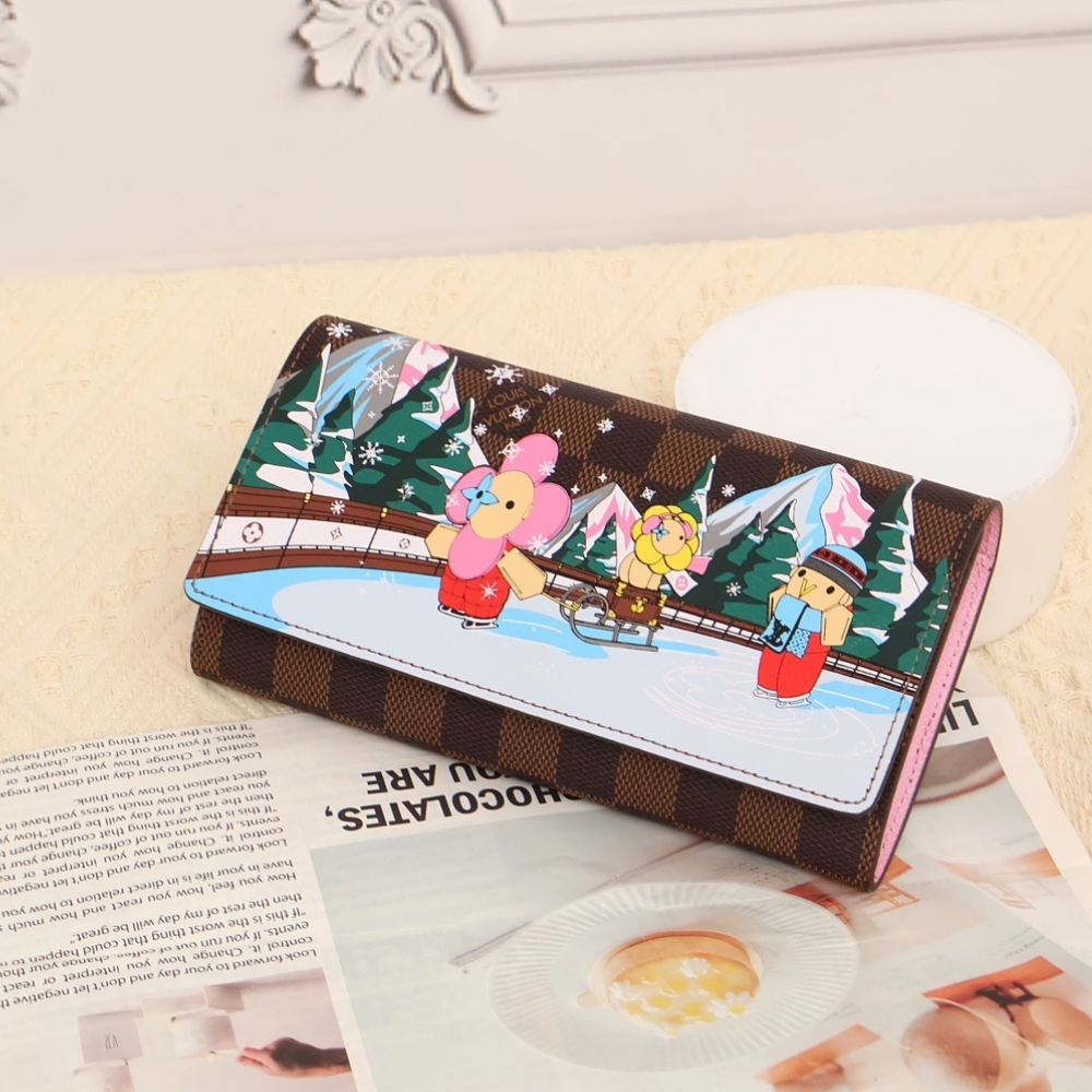 Replica 1:1 Louis Vuitton Sarah Wallet Damier Ebene Pink