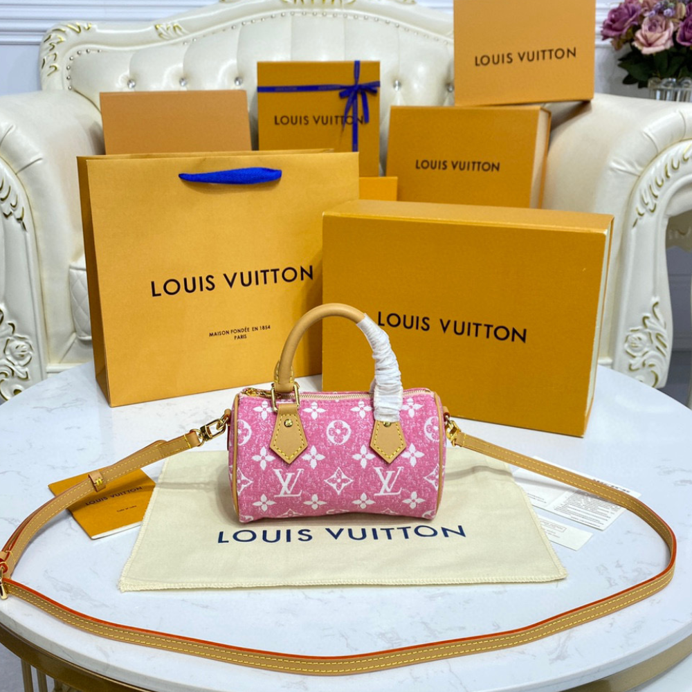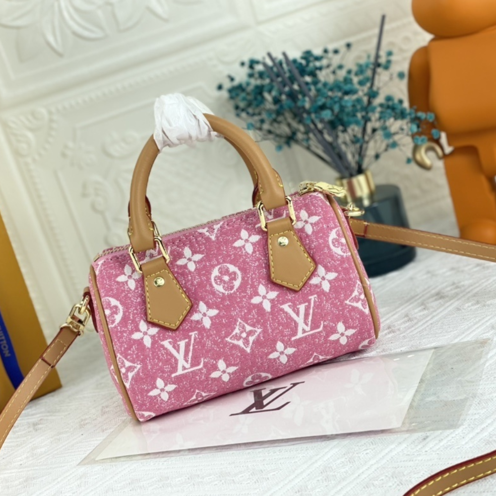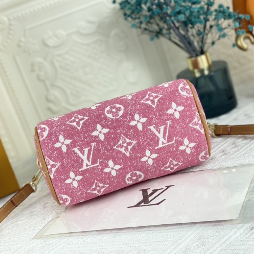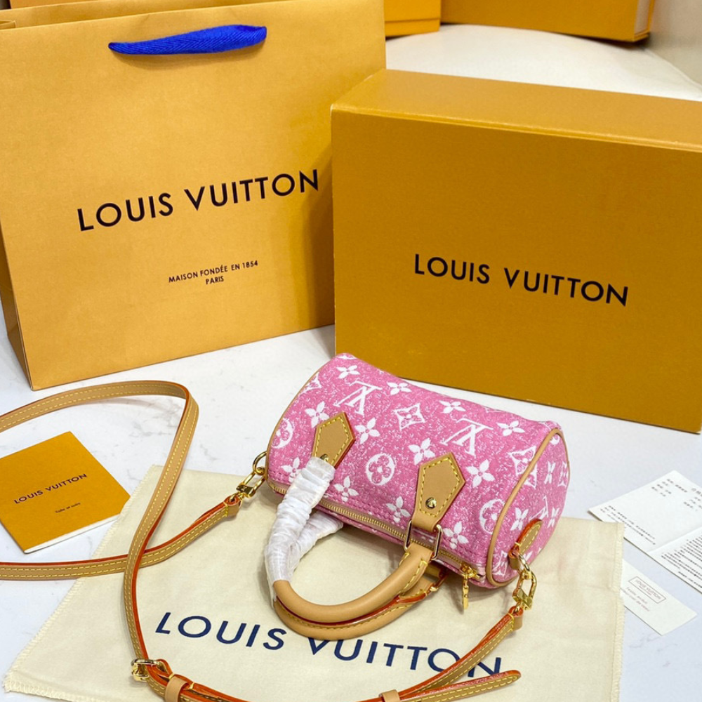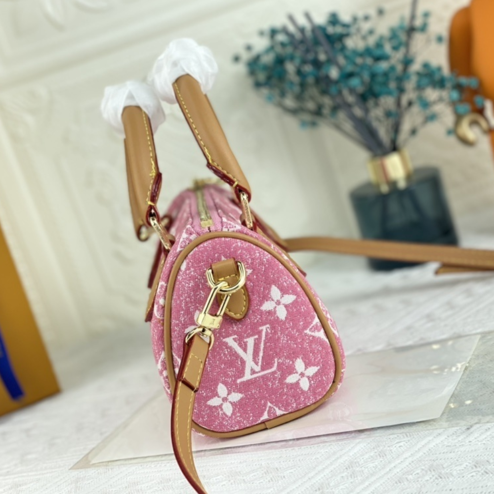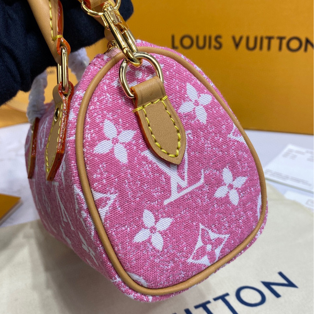 Louis Vuitton Nano Speedy Monogram Denim // Pink // 20.5cm