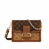 Gold hardware details, LV twist lock, decorative gold chain with flower charm, detachable strap