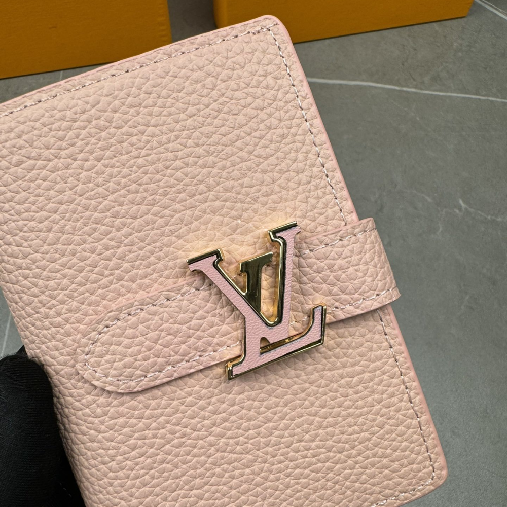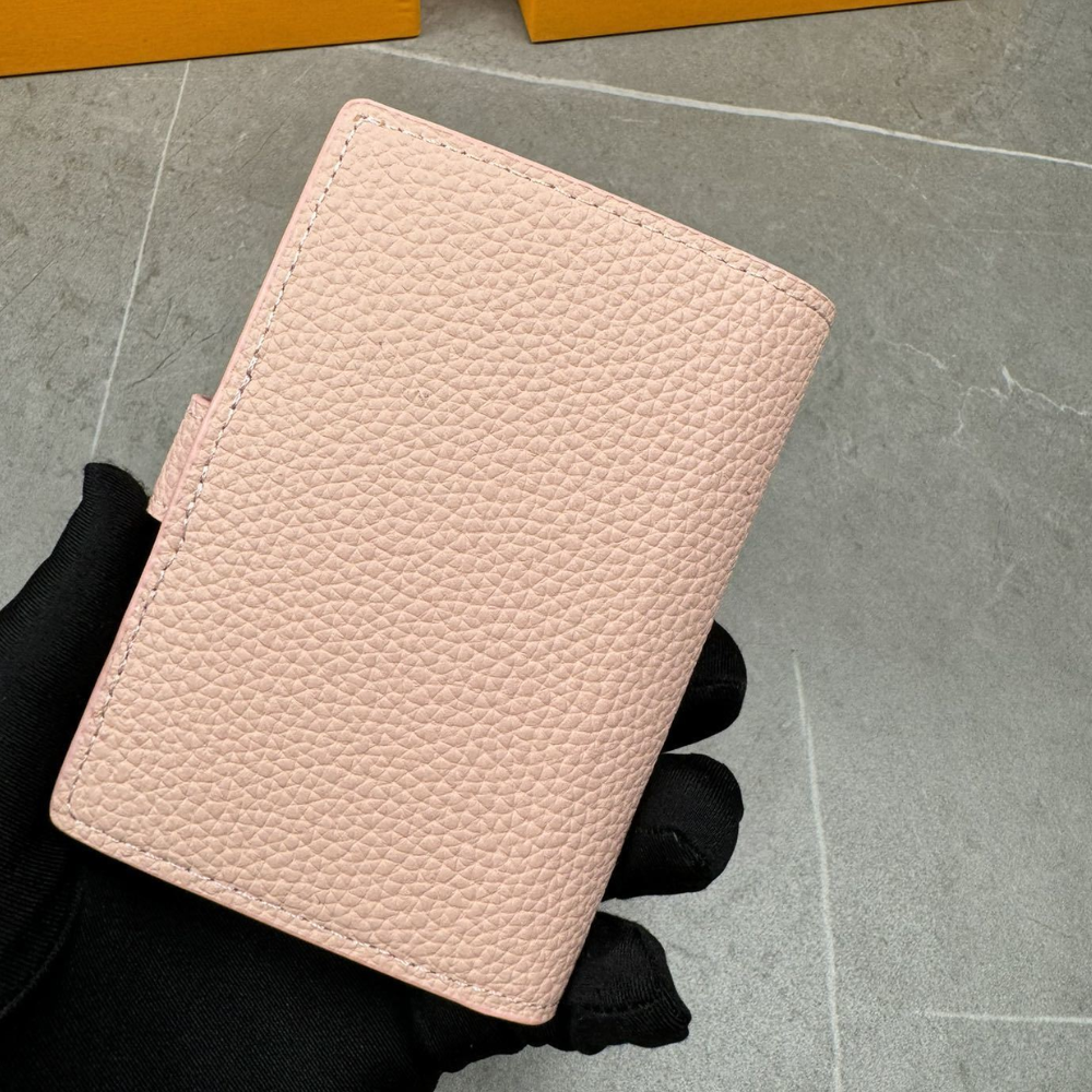 LOUIS VUITTON VERTICAL COMPACT WALLET CAPUCINES TAURILLON LEATHER PINK 3.5 INCHES M82198