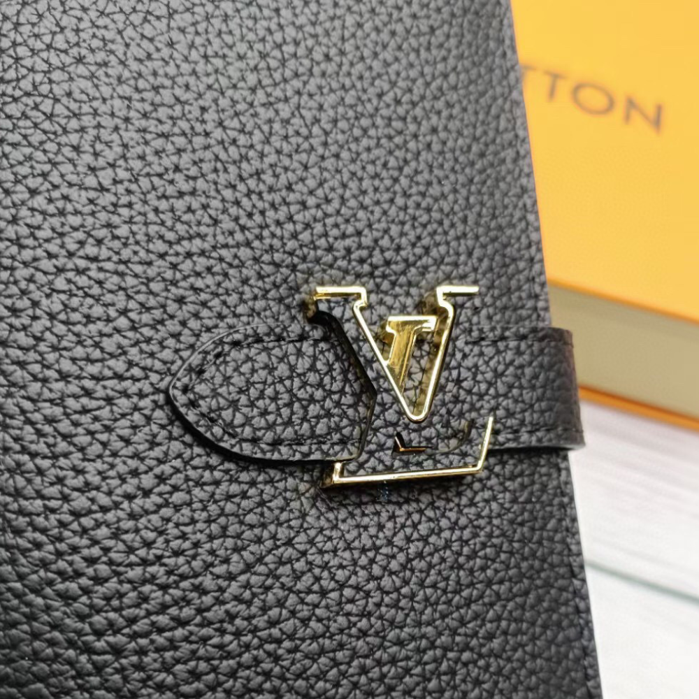 Replica 1:1 Louis Vuitton Vertical Wallet Taurillon Leather Black